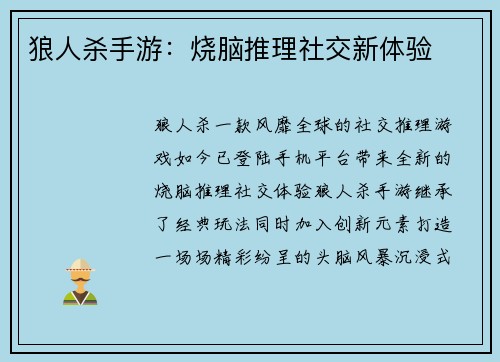 狼人杀,一款风靡全球的社交推理游戏,如今已登陆手机平台,带来全新的“烧脑推理社交”体验。《狼人杀手游》继承了经典玩法,同时加入创新元素,打造一场场精彩纷呈的头脑风暴。