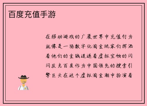 在移动游戏的广袤世界中,充值行为就像是一场数字化淘金,玩家们挥洒着他们的金钱,追逐着虚拟宝物的闪闪发光。百度,作为中国领先的搜索引擎巨头,在这个虚拟淘金潮中扮演着举足轻重的角色。