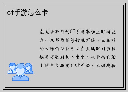 掌握CF手游卡点技巧,将使你成为一名更加致命和难以捉摸的对手。那么,现在就让我们踏上时空之旅,探索卡点的奥秘,成为比赛场上的时间主宰者吧!