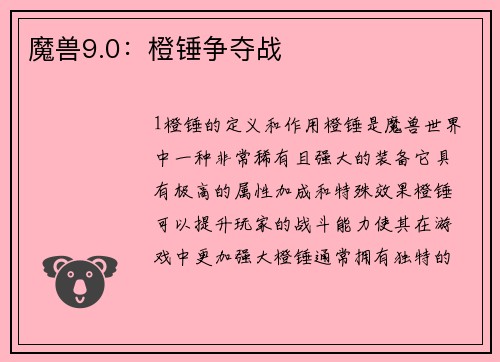 橙锤是魔兽世界中一种非常稀有且强大的装备,它具有极高的属性加成和特殊效果。橙锤可以提升玩家的战斗能力,使其在游戏中更加强大。橙锤通常拥有独特的外观和故事背景,使得玩家在获得橙锤时感受到一种成就感和满足感。